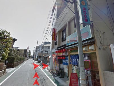 4 Y字路右側の道を直進してください。