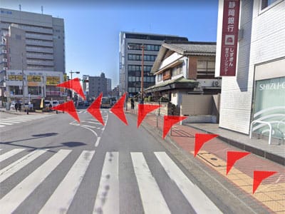 2 静岡銀行の前を通り右に曲がってください。
