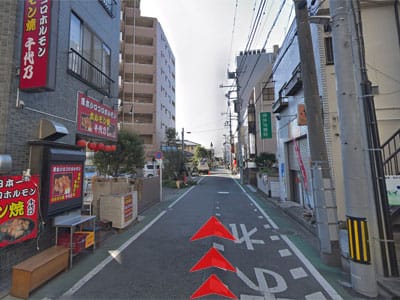 11 ホルモン焼き屋さんの前に到着したらお電話ください。
