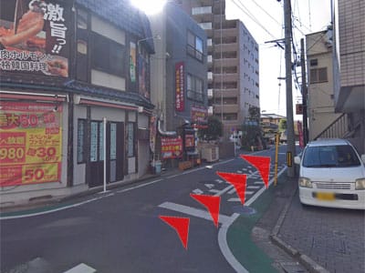 3 横断歩道を渡りY字路右側の道を進んでください。
